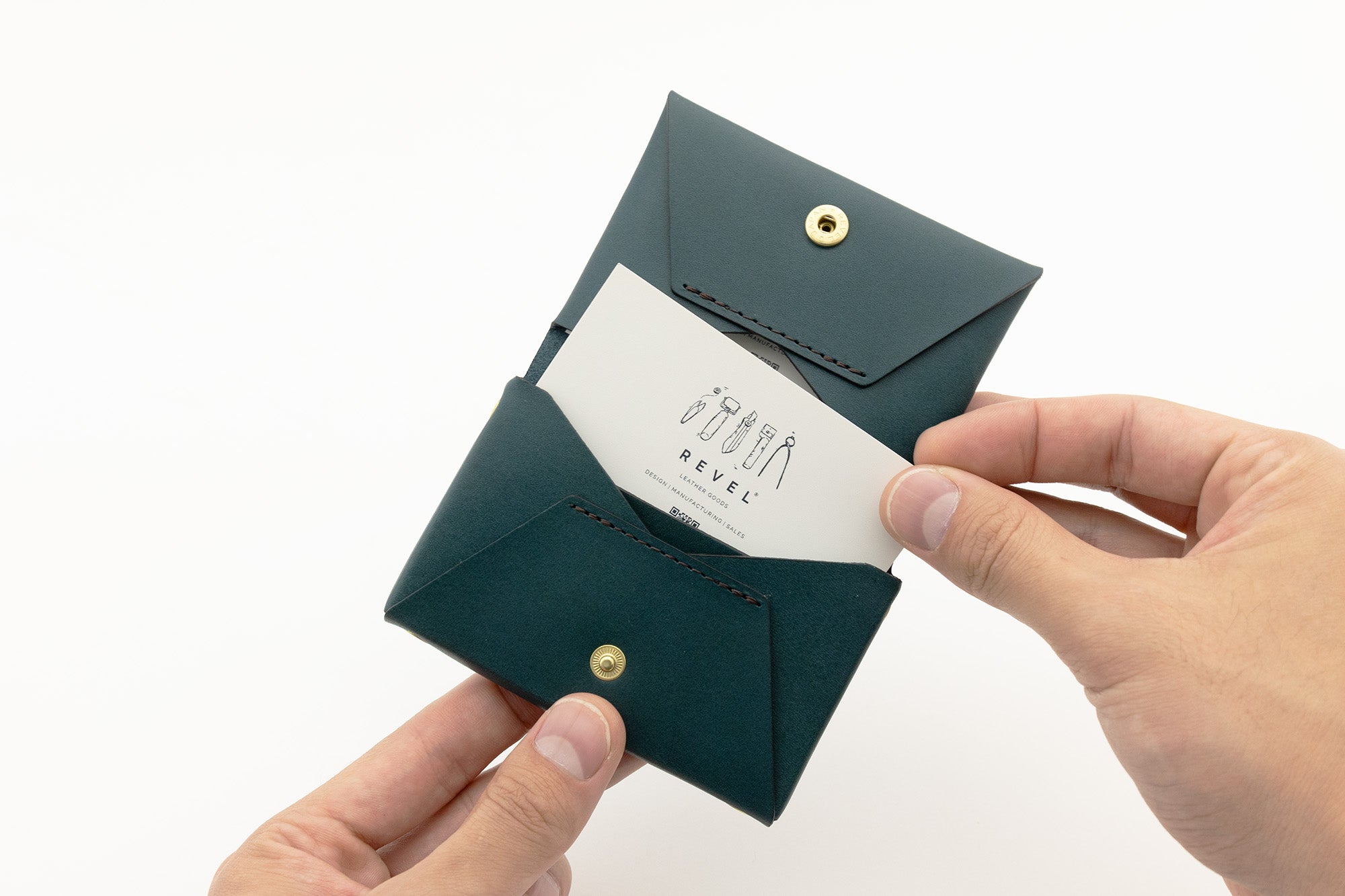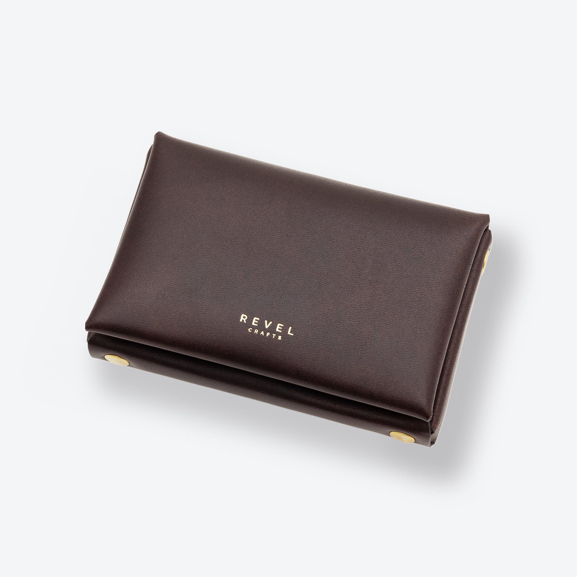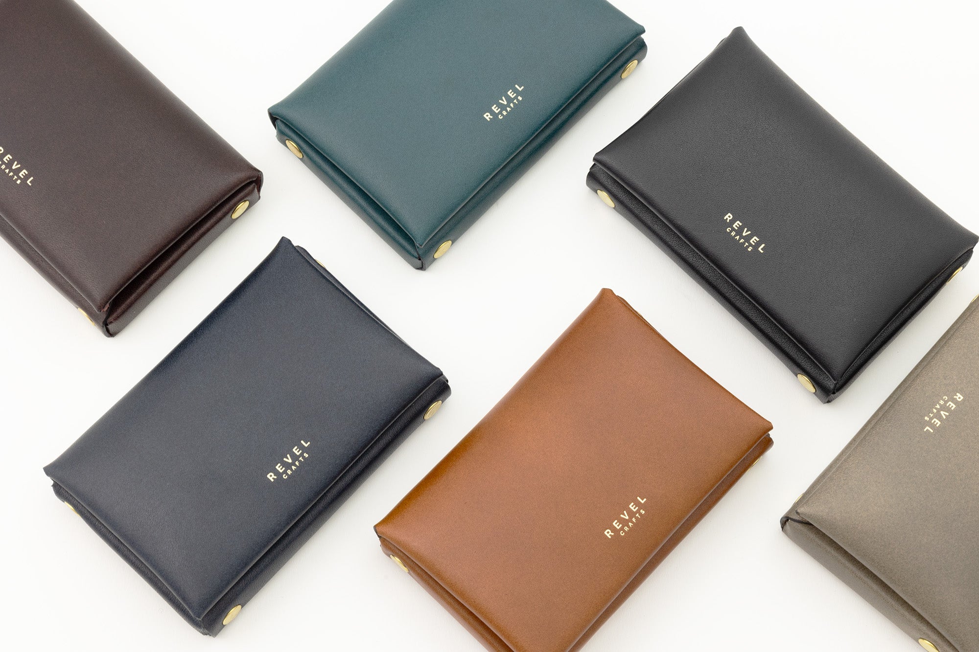 REVELの得意とする折革製法を活かした箱型の立体構造で、収納力が高いですが表面に縫い目がない為通常の名刺入れより一回り小さくスッキリとしたデザインです。