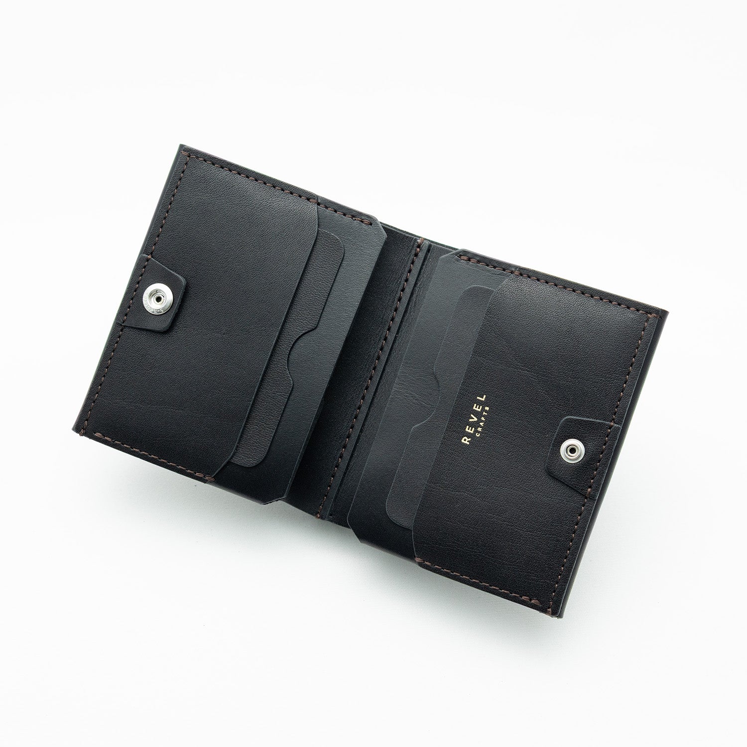 コンパクトを追求する為に特殊な薄型のホックを採用しています。小銭入れがある財布では開閉がしづらくなってしまう為に採用できないのですが、MIDYは内側に小銭入れがなくフラットを保つことができるので採用しました。